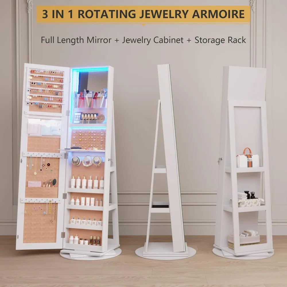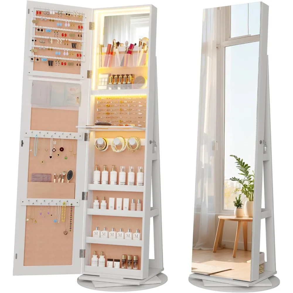 - [360°Swivel Base] 360-degree rotating allows easy access to the items you've stored inside and backside the armoire at each angle. A stable round base enhances stability. Locking design with the christmas tree-shaped 2 acrylic keys and prevent the jewelry from being infected with air and stay from away the children