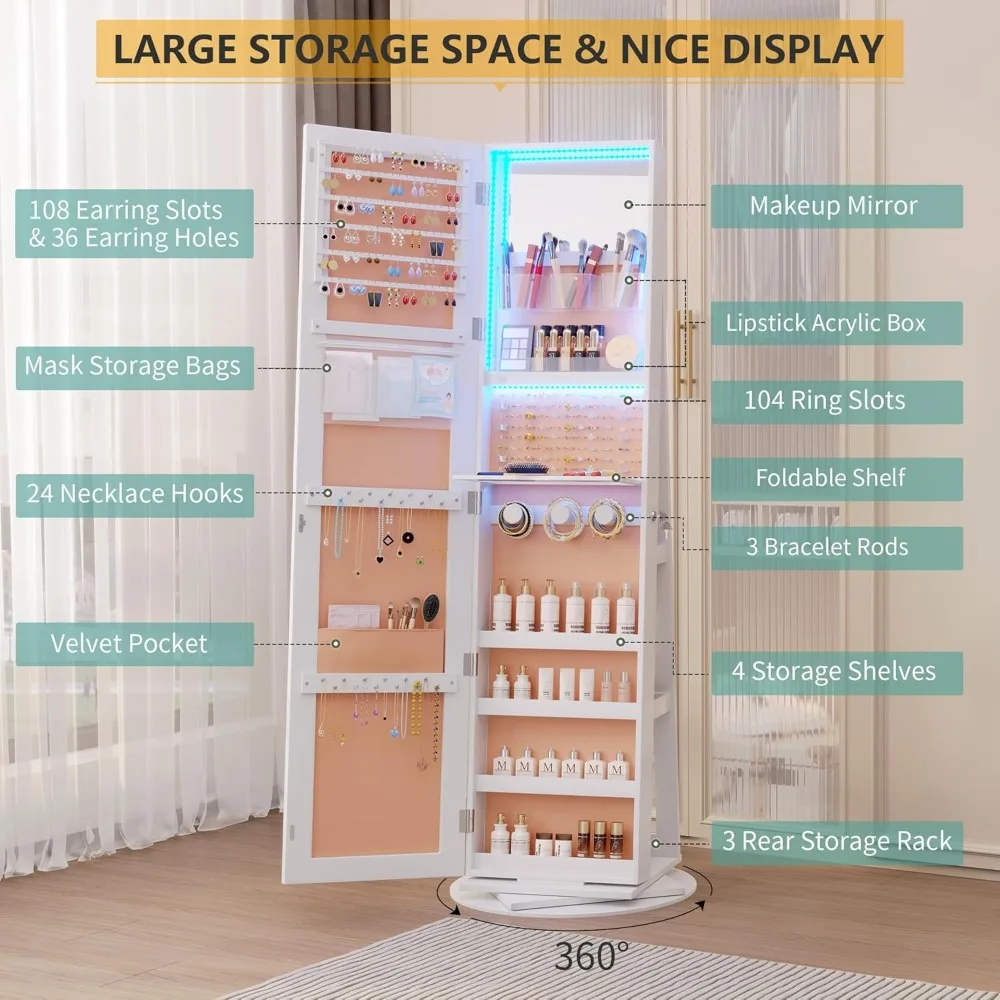 360° Swivel Mirror Jewelry Cabinet Standing(For the US only