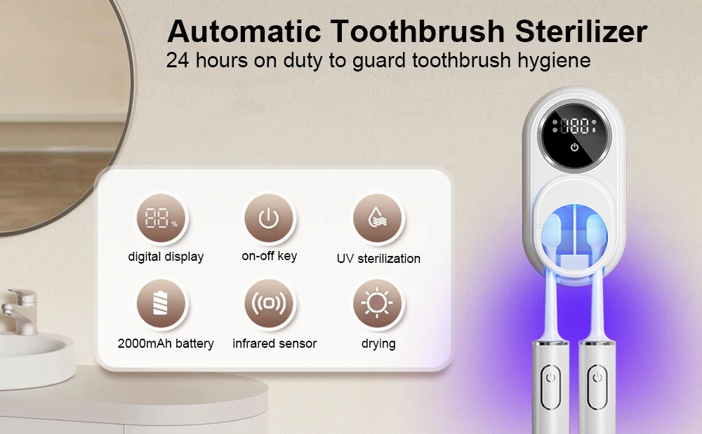 LED Smart Screen: Our raugee Toothbrush Sterilizer comes with a LED screen. Battery status, cleaning progress, air drying status, all functions visible at a glance.