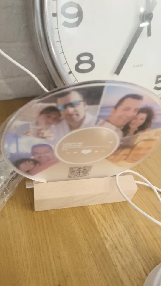 Turn your most treasured memories into a breathtaking display with our high-quality Personalized Music Plaque! This unique piece combines a custom photo frame with a scannable music code that plays your favorite song. Simply place the personalized acrylic song plaque on the included wooden base, and watch as the custom album cover glows with a warm, soothing light. Perfect for adding a touch of elegance and sentiment to any room—whether it’s your bedroom, living space, or nursery.