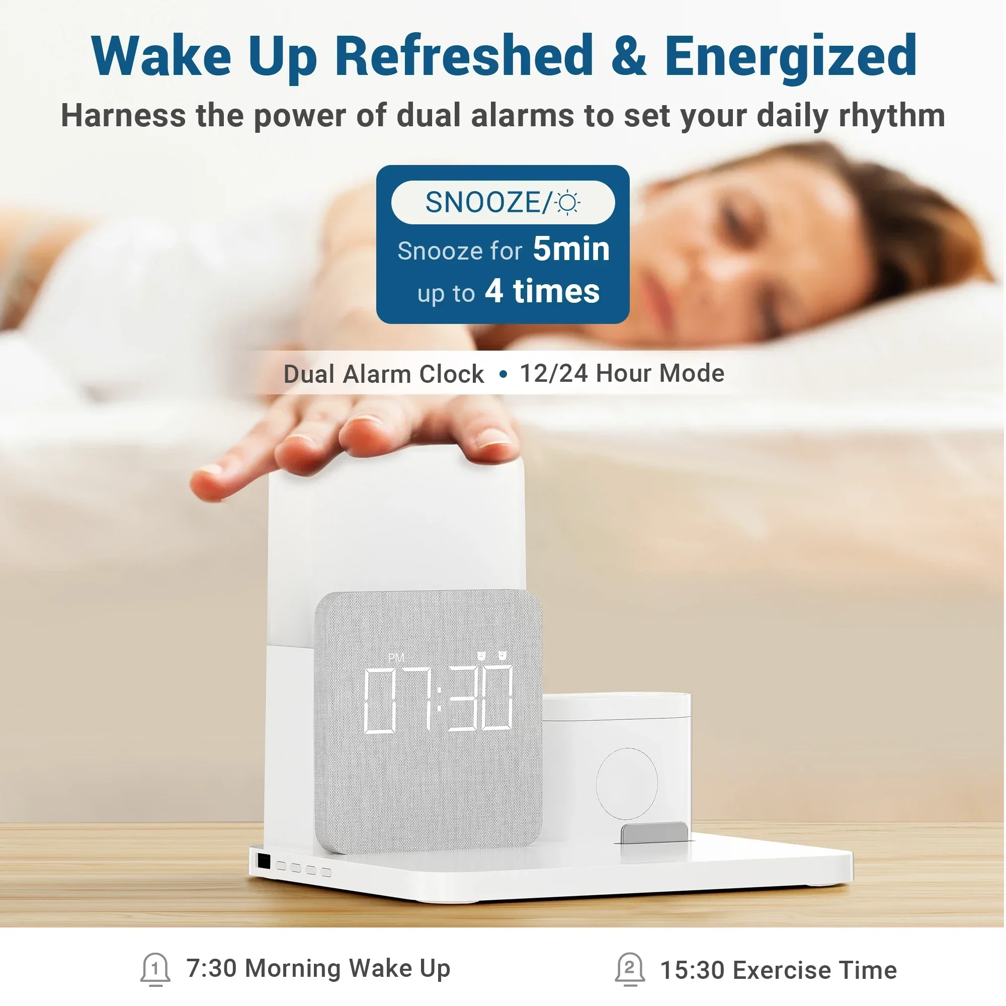 The snooze function allows you to catch an extra shuteye. Press the [Alarm] button or the screen’s top when alarm sounds, you will gain 5 more minutes on bed.